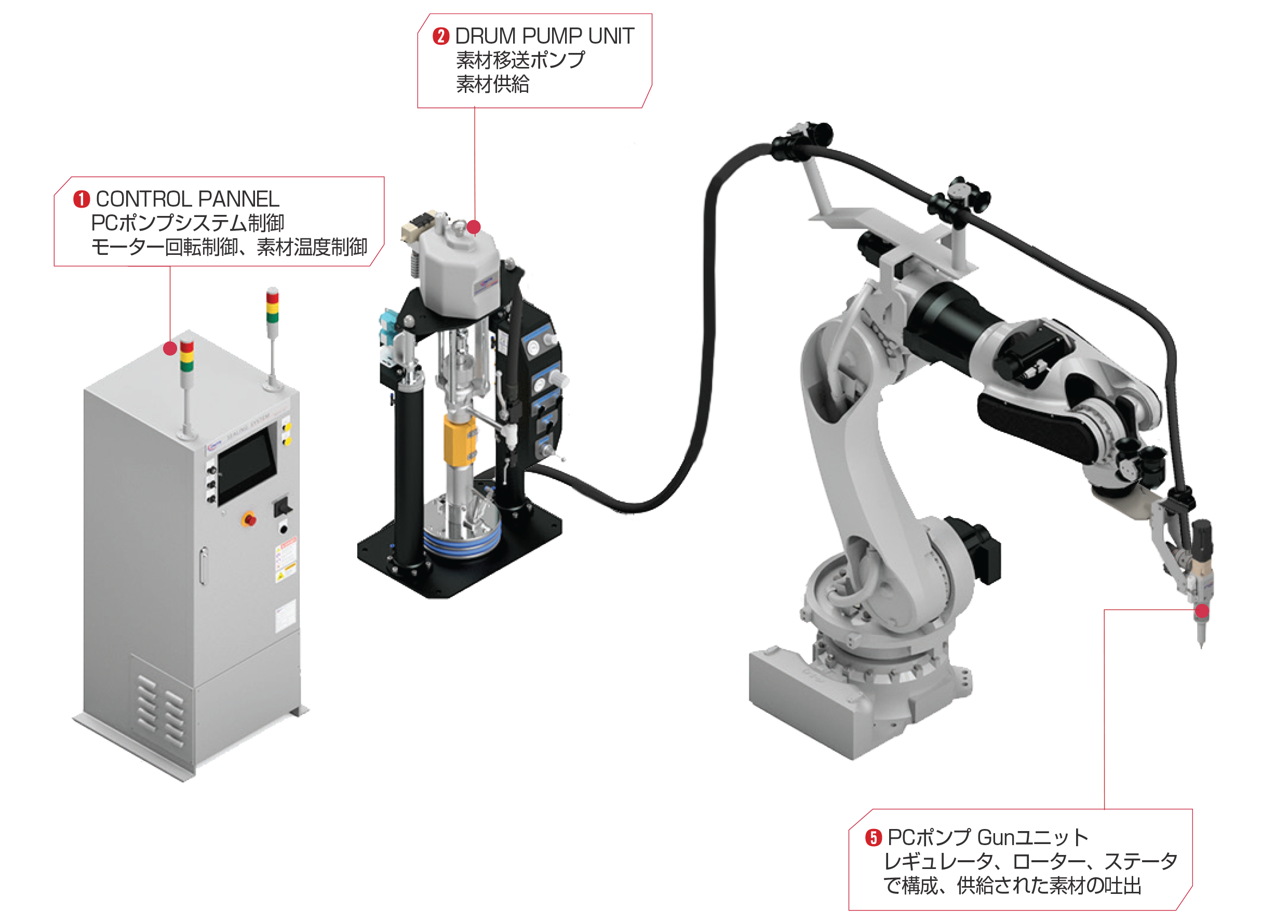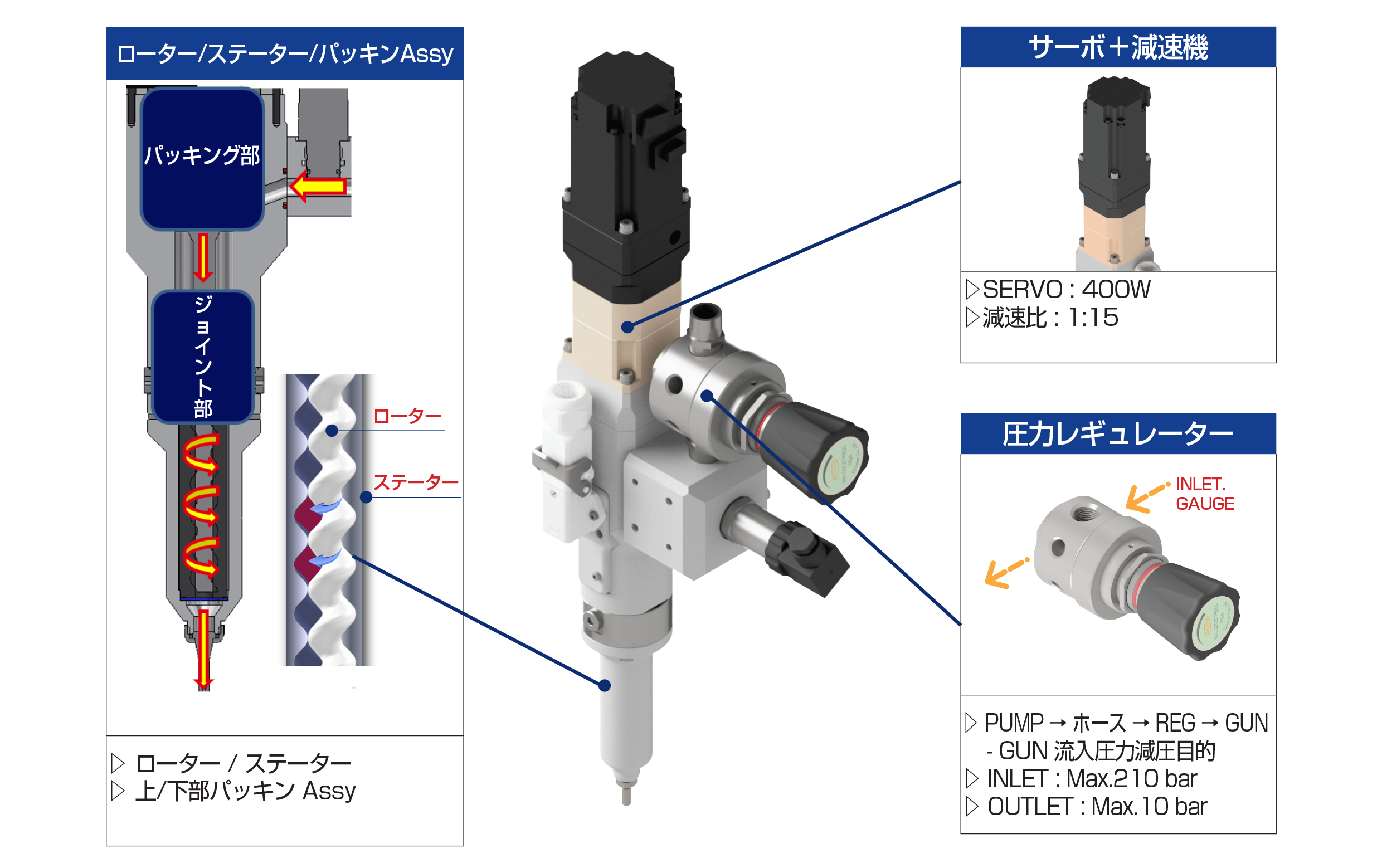 | 400W /ACサーボモーター | 減速比 15:1 | 3.5cc/sec(構造用接着剤) | EXTRUDE塗布流体可能 | ± 2% 以内 |