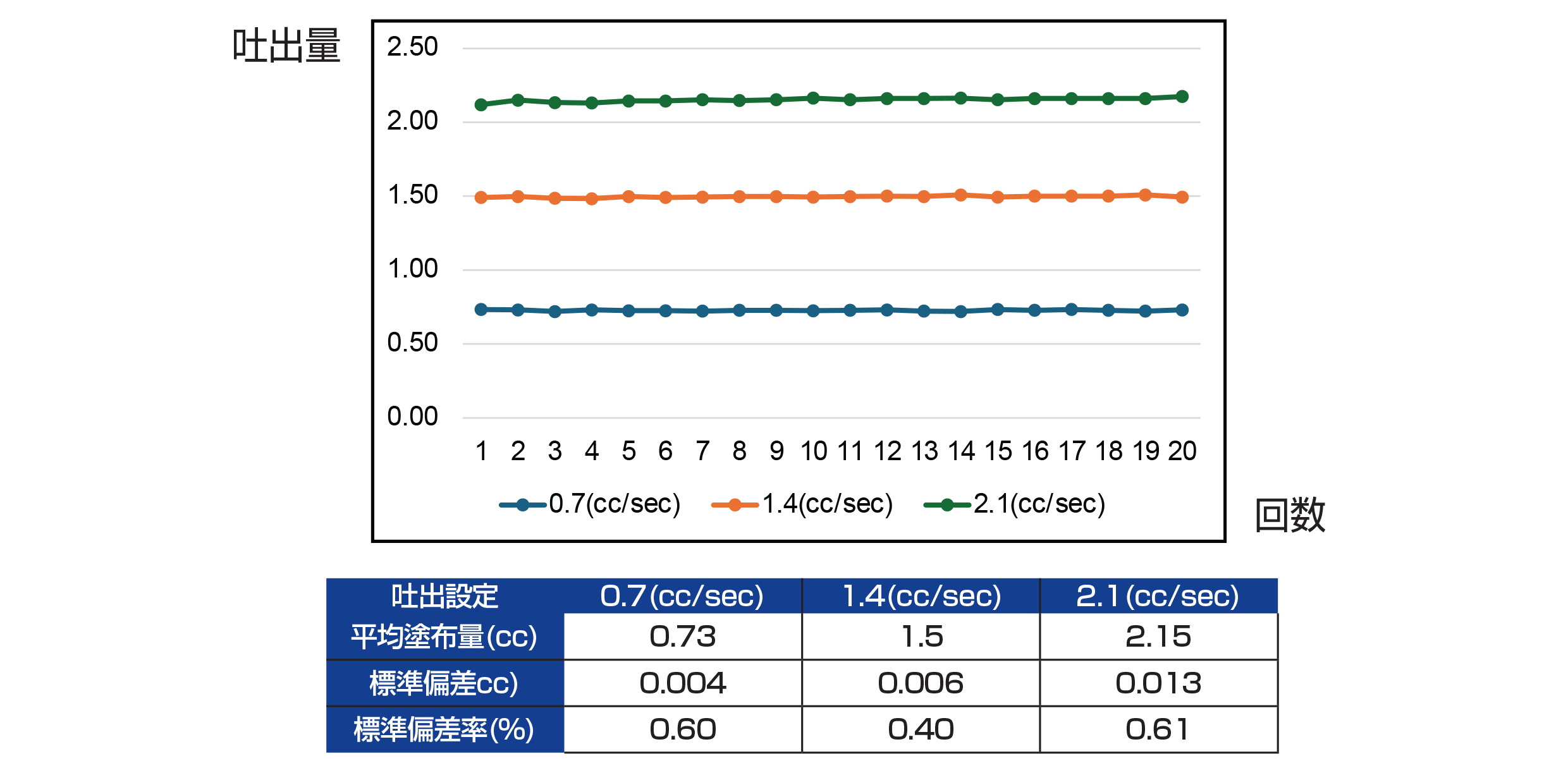 | 吐出精度 | モーター定格 | モーターRPM | ローターRPM | 最大吐出量 |